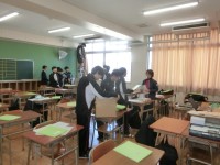 月曜の朝は全校集会を開きます。今朝も玄関ピロティと各教室をオンラインでつないで行いました。生徒会の皆さんから「明後日から始まる期末テストに向けて頑張りましょう!」とのメッセージが。時間を大切に、対策を講じてくださいね。