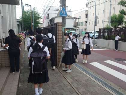 雨は降っていませんが、梅雨空が広がる朝。明日から期末テストが始まります。テスト終了後に、ノートやワークを提出する教科があるようです。テスト範囲表で確かめてくださいね。
