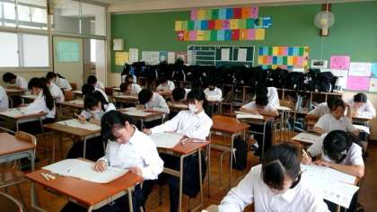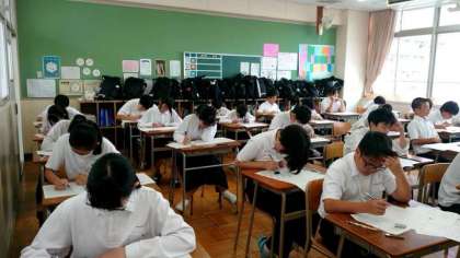 1年生の皆さんが「美術」のテストを受けています。美術科のテストを受けるのは今回が初めてですね。知識を問う問題に加えて実技テストもあるようです。時間配分に気をつけて、ていねいな作品に仕上げましょう。
