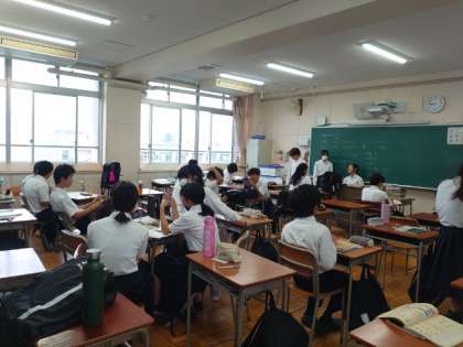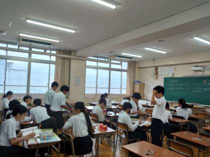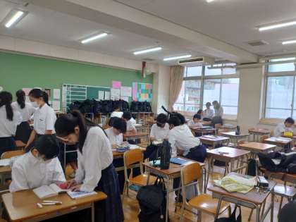 テスト開始前の1年生の教室では、最後のテスト勉強に取り組んでいます。互いに問題を出し合う人が多いようですね。今日が終われば、少しホッとできますね。
