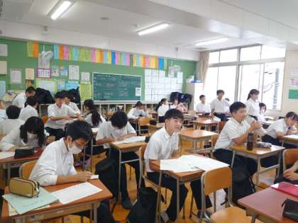2年生の教室でもテストの直前学習に励んでいます。各クラスともに、穏やかな雰囲気で学習している姿が良いですね。皆さんの努力が実りますように!