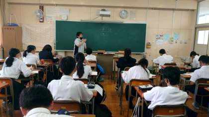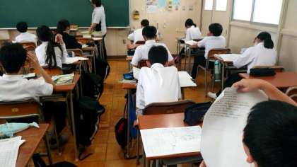 先週の3日間実施された期末テスト。さっそくテスト結果が返却されています。1年生の教室では英語のテストが返されています。先生が今回の出題内容を解説中。しっかり聞いて、今後の学習に役立てましょう。