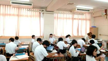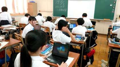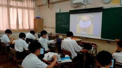 1年生美術の授業で「バルーンランプシェード」の制作が始まりました。ふくらませた風船に紙粘土を巻き付けて制作するそうです。皆さん、タブレット端末を使って参考となるデザインを調べています。気球の形にぴったり合うステキな作品を考えてくださいね。