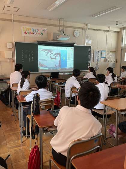 連日蒸し暑い日が続いています。いつもは武道場で行う学年集会を涼しい教室でteamsを使っての学年集会を実施しました!