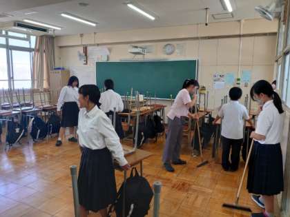 今日は全校一斉の大清掃に取り組みます。1年生の皆さんは校舎4階と体育館を中心にお掃除を行います。皆さん、頑張ってくださいね。