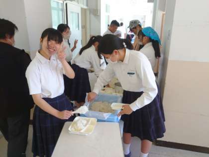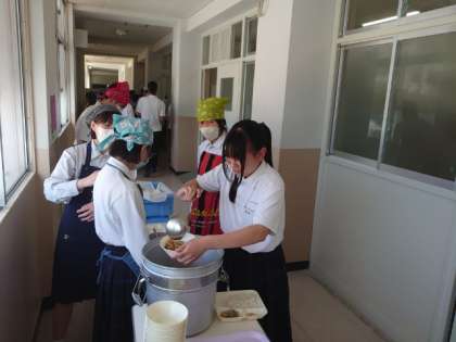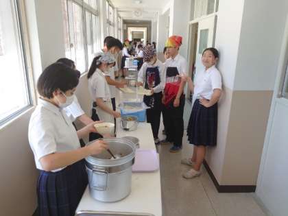 お昼休みになり、3年生の皆さんが給食準備を進めています。今日のメニューは「牛丼・ピーマンともやしのゴマ炒め・大福豆の煮物」です。甘辛く煮込んだ牛丼の具はご飯にかけていただきす。午後の授業も今日・明日の2日間となりました。しっかりと給食をいただいて、午後も頑張りましょう。