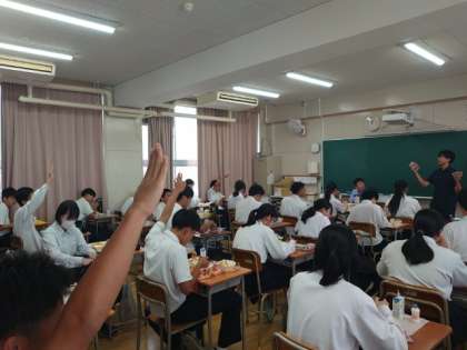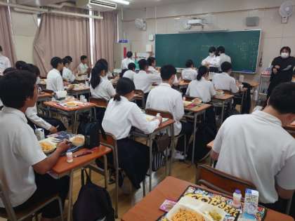 「いただきます」の合図で給食が始まりました。3年生の教室では牛乳の追加を求めて、手があがります。栄養素がバランスよく含まれた準完全栄養食品です。カルシウムもたっぷりなので、骨の健康にも効果大ですよ。