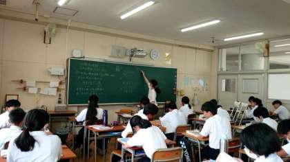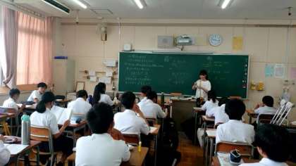 1年生数学科で「不等式」の学習が行われています。これまでは「= (等しい)」の式を習ってきました。今日から「 < (〜より小さい)・ > (〜より大きい)」を使った計算に取り組みます。「 ≦ や ≧ 」などの不等号もあるので、違いを押さえましょう。