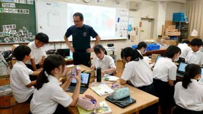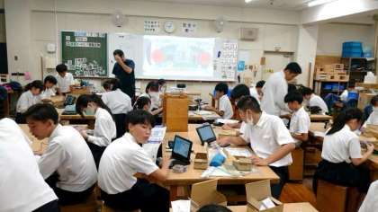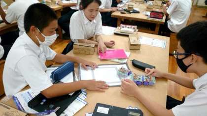 2年生技術の授業で自走式ロボットを製作中。モーターを使ってゆっくり進むロボットです。パソコンを使ってプログラムを組み込めるそうです。皆さんはどんな動きを入力しますか?