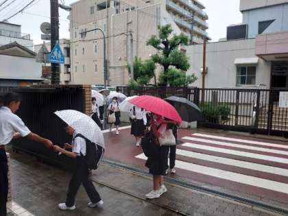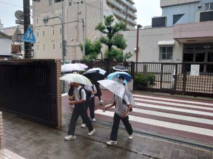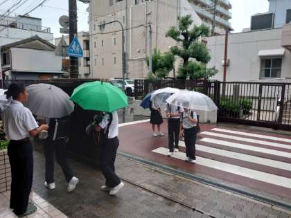 未明から降り続く雨。皆さん色とりどりの傘を手に登校してきました。明日から3連休。地域の夏祭りも行われるようです。トラブルや事故に遭わないよう、気をつけてくださいね。
