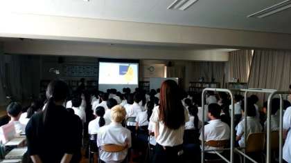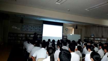 3年生の皆さんが図書室に集まり世界平和について考えます。今日は「イスラエルとパレスチナの紛争」を学習します。昨年の10月以降、双方の攻撃が激化し、多数の犠牲者や被害など、深刻な問題が起こっています。1日も早く戦闘を停止し、解決に向けた動きが進むことを願っています。