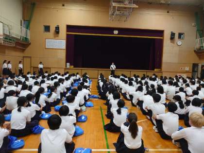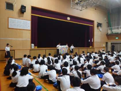 1学期終業式が行われました。先生方や生徒会役員の皆さんから有意義な夏休みを過ごすよう、お話がありました。約40日の夏休み。事故やトラブルに気をつけて、楽しい思い出をたくさんつくりましょう!