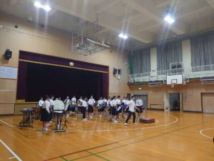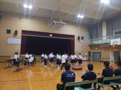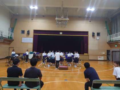 吹奏楽部の皆さんが体育館で演奏を披露しました。27日の土曜日に開催される吹奏楽コンクールで演奏する曲を先生方に聴いていただきました。本番に向けて、皆さん心一つに頑張ってくださいね。
