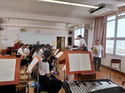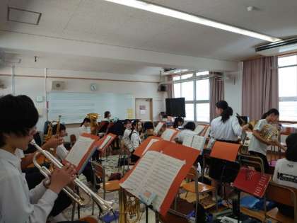 音楽室で吹奏楽部の皆さんが練習中。コンクールまであと2日。最終仕上げに向けて、演奏に磨きをかけます。皆さんの心の込もったパフォーマンスを楽しみにしています!
