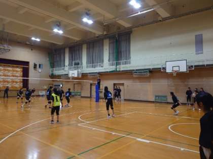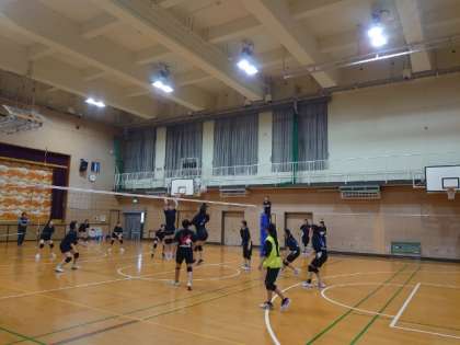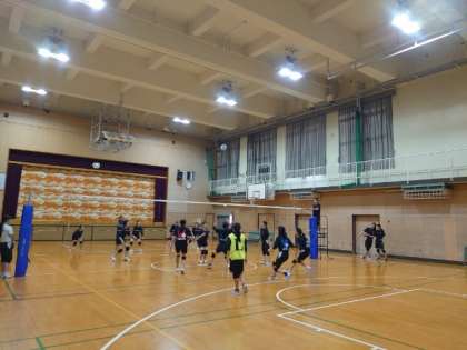 体育館では女子バレーボール部が練習試合を行っています。日頃の練習の成果を実践で試す良い機会です。ゲームでは良いサーブが決まっていましたね。次の大会に向けて、一層のレベルアップが楽しみです。
