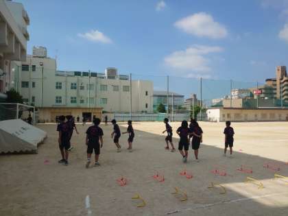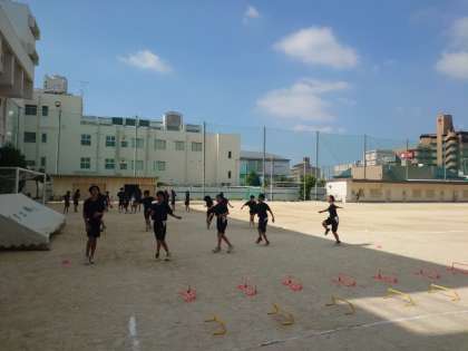 運動場では陸上部の皆さんが練習に励んでいます。先日のブロック大会で3年生が引退し、1、2年中心のチームになりました。先輩方の教えを糧に、気持ち新たに頑張ってくださいね。