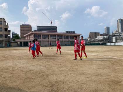 サッカー部は8月5日に引き続き練習試合を行いました。昨日の疲れや暑さから少ない人数での試合となりました。いろいろとポジションを試しながら戦います。前半は安定した守備やシュートの意識など良い攻撃を見せますが、後半ポジションを変えると守備の綻びや疲れから足が止まり攻撃も単純なものになってしまいました。体力の強化など課題が見られる試合となりました。夏場は危険な暑さが続くので秋以降体力をつけられる練習も取り入れられるようにすると良いですね。