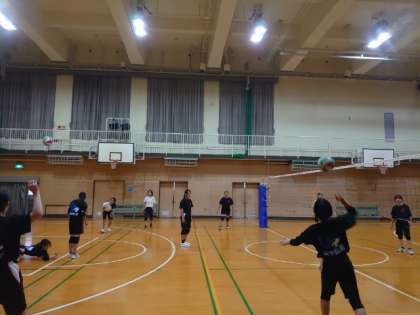 お盆休みが明け、部活動が再開しています。体育館では女子バレーボール部が気持ち良い汗を流しています。まずは基本的なレシーブ・トスの連携を確かめるところから。久しぶりのボールの感触はいかがですか?
