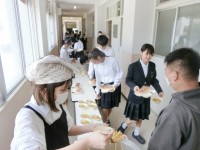 1年生国語の授業で鑑賞している「竹取物語」。先生から配られたワークシートを使って、お話の内容を掘り下げます。かぐや姫や帝・貴公子など、物語の登場人物の心情を考えて短い文章にまとめます。難しい点は、先生に質問しましょう。