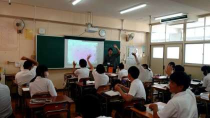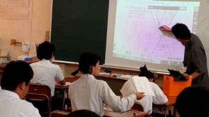 2年生数学科で学習している「一次関数」。今日は一次関数のグラフの書き方を教わります。