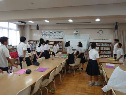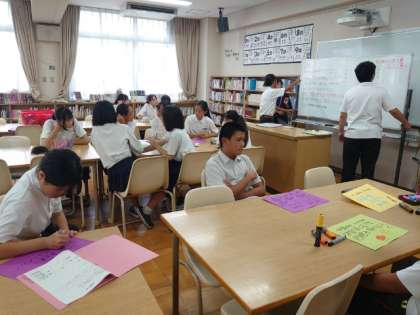 先週末の放課後、各学年や委員会の代表と生徒会役員の皆さんが「生徒議会」に取り組みました。今月の学校目標を話し合い、啓発ポスターを作成しました。前期の活動もこれでラスト。半年間、桃中生が楽しく過ごせるように頑張ってくれました。皆さん、ありがとうございました!