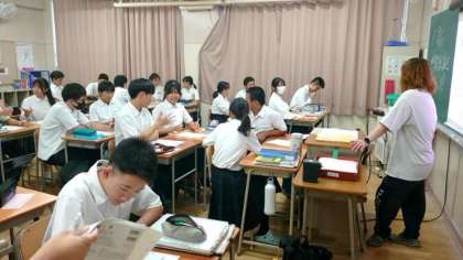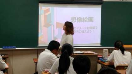 3年生美術の授業で「想像絵画」に取り組みます。互いにペアになって、スクリーンの絵を覚えて相手に伝える人・相手の説明を聞いて絵を描く人に分かれます。どれだけ正確に描けるでしょうね?
