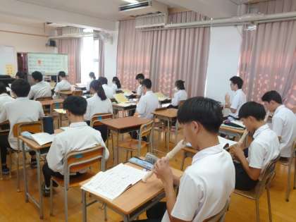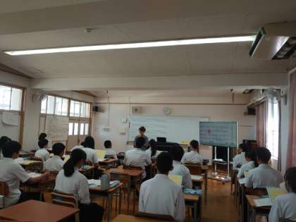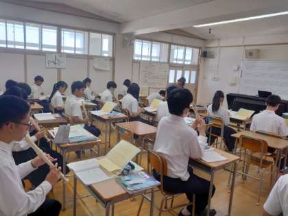 音楽では3年生の皆さんがリコーダーの練習中。今日は、イギリスの作曲家エドガーの行進曲「威風堂々」を演奏します。卒業生を送る会などの入場時に、よく使われる楽曲です。イギリスでは「第2の国歌」として愛されているそうですよ。
