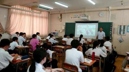 2年生の他のクラスも道徳の授業が行われています。教科書の読み物教材をもとに、「自然や歴史を大切にする気持ち」「よりよく生きることとは?」などを考えてみましょう。