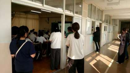 現在、数学科の校内研究授業が行われています。今日は2年生の「一次関数」の授業について研究協議を進めます。教育センターや校区小学校の先生も来てくださり、ありがとうございます。