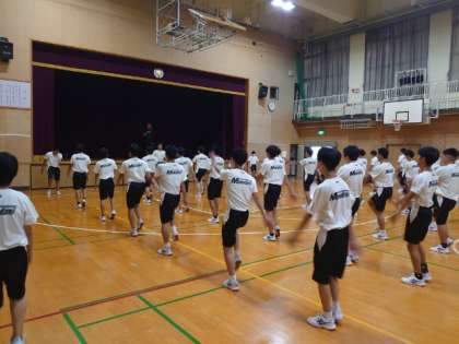 体育大会に向けた練習がスタートしました。体育館では3年生の皆さんが入場行進の練習中。力強く腕を降って、みんなで動きを合わせます。各クラスで競いあって、集団行動の美しさが表現できると良いですね。