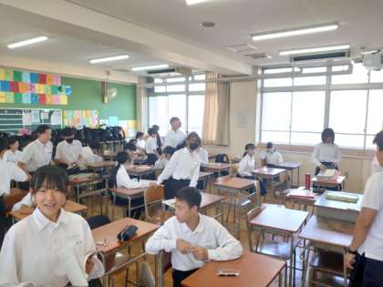 テスト開始前の1年生教室では、皆さん最後の追い込みに励んでいます。先生に質問する人もいる模様。今、確かめている内容が、テストに出題されていると良いですね。