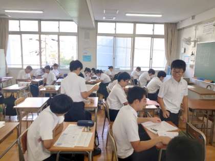 2年生の皆さんもテスト前の学習に取り組んでいます。互いに問題を出し合ったり、黙々とノートに目を通す姿も。それぞれに合った学習スタイルがあるようですね。