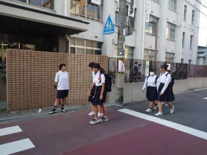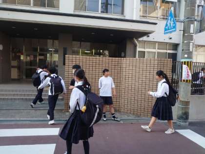 爽やかな秋空が広がる朝。皆さん、ノートを手に登校してきました。中間テスト2日目。今日は「英語・数学・理科」のテストを実施します。テストはお昼前まで。クラブ活動を除き、生徒の皆さんは12時30分頃に下校となります。