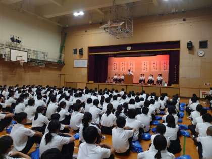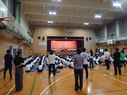 先日、生徒会後期役員立候補者の立会演説会を行いました。明るく楽しい学校生活をめざし、桃中のために立候補してくれました。皆さん、しっかりと演説を聞いてくれています。