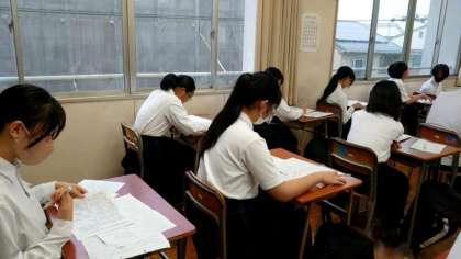 2年国語科も中間テストの結果を返却しています。先生が出題されていた古典の問題の解き方を解説中。間違えた箇所をいかに克服するかが、今後の学習に活かされます。先生のお話をしっかりとメモして、次のテストに役立てましょう。