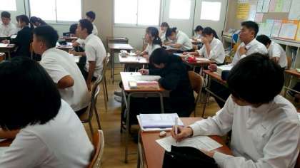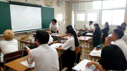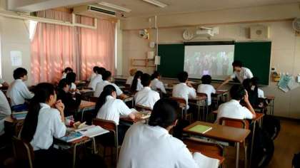 3年生道徳の授業で、ネルソン・マンデラさんのお話を教わります。南アフリカ共和国の大統領で、アパルトヘイト (人種隔離政策) 撤廃に力を注ぎました。授業ではマンデラさんを扱った映画の一部が映されています。皆さん、真剣に見入っています。