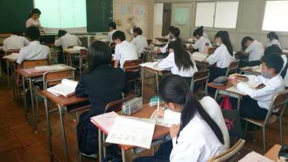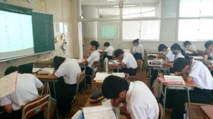 1年生国語の授業で「故事成語」を学習します。昔の出来事をもとにできた言葉で、中国から伝わってきたものが多いとのこと。今日は「矛盾」のお話を教わります。中国戦国時代に著された「韓非子」に出てくる故事だそうですよ。