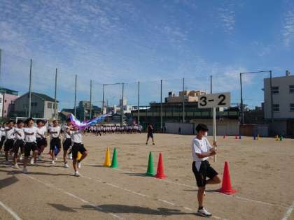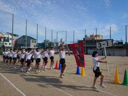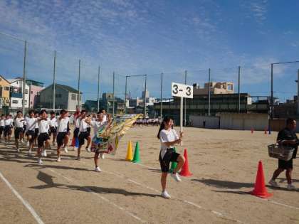 入場行進のトップバッターは3年生。明日の本番同様、力強く行進しています。