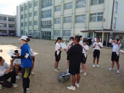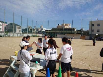 予行演習では召集や用具、記録などの係生徒が、本番同様に役割を担います。先生としっかり打ち合わせて、スムーズに進行できますように!