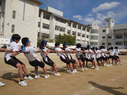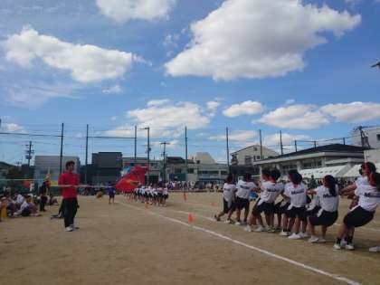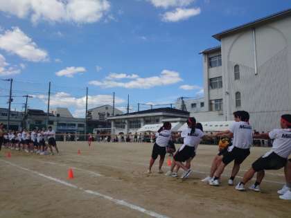 体育大会午前の部の最後は学年対抗の「綱引き」です。各クラスで掛け声を合わせて、懸命に綱を引きます。思わぬ大逆転が起こったり、ハラハラする展開でしたね。