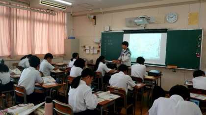 1年生社会科の授業で「アメリカ合衆国の工業」について学習します。五大湖周辺の自動車産業がさかんでしたが、近年は「サンベルト」と呼ばれる地域でコンピュータ関連等の先端技術産業が発達しています。ハイテク産業ともいいますね。