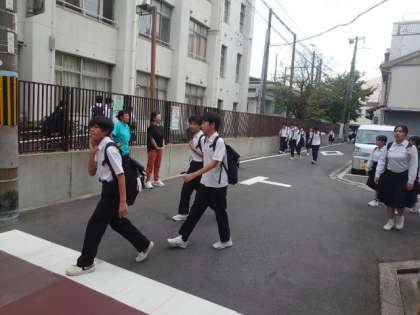 厚い雲が空を覆う朝。今朝も皆さん元気に登校してきました。今日は3年実力テスト。5教科のテストを受けた後、14時40分頃に下校となります。お家に帰ったら、少しゆっくりしてくださいね。