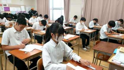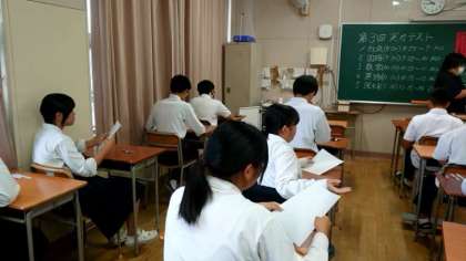 1時間目、社会科のテストが始まりました。地理と歴史からの出題に加え、公民からも問題が出ている模様。学習内容をよく思い出して、デキる問題から解き進めましょう。