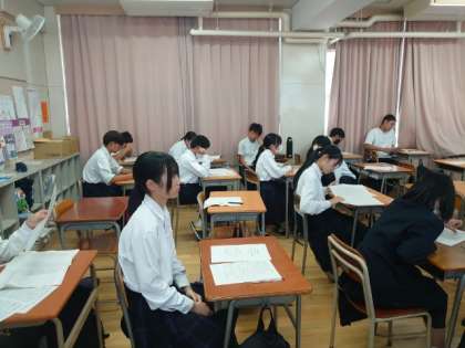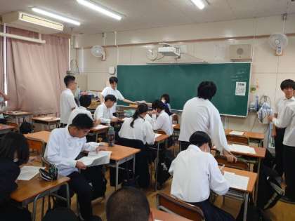 先週金曜日に実施された3年実力テスト。早速、テスト結果が返却されています。現在、英語のテストが返されているところ。喜んだり、悔しがったり、さまざまですね。次回の実力テストは11月29日 (金) に行います!