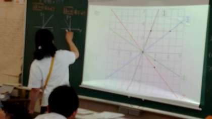 1年生数学の授業で「比例のグラフの書き方」を教わります。今日は「 y=ax (aは比例定数)」のグラフを作成します。比例定数がプラスなら右上がり、マイナスなら右下がりのグラフになるとのこと。共通するのは「原点を通る直線」になる点です。しっかりと押さえましょう。