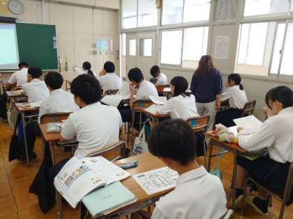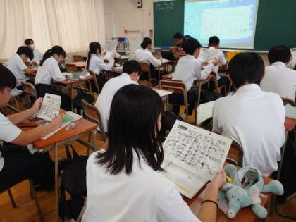 2年生英語の授業で地下鉄の路線図が配られました。これから英語での道案内にチャレンジします。目的の駅に行くためには路線の乗り換えが必要なケースも出てきます。皆さん、上手く説明できましたか?