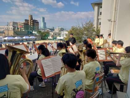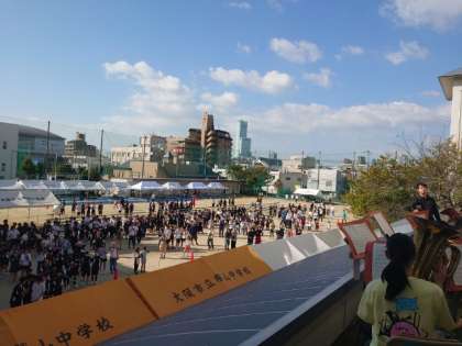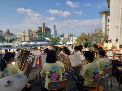 昨日の雨が上がり、気持ち良い秋空が広がる中、第6回桃中祭が開催されました。オープニングは吹奏楽部の皆さんのステキな演奏です。