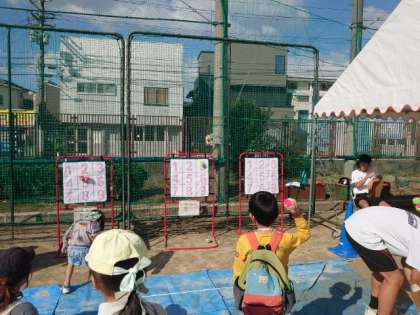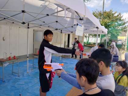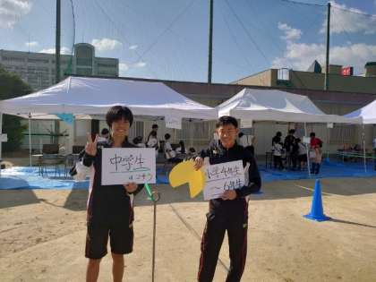 クラス単位で、趣向を凝らしたゲームブースを開いています。小さい子どもたちも楽しんでもらえるように、中学生がやさしく説明しています。その気配りにほっこりします。