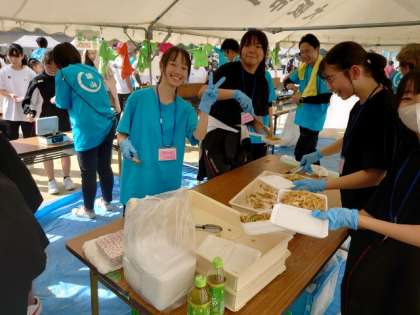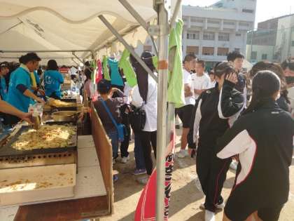 お祭りといえば、楽しみは飲食の屋台。今年も地域の皆様やPTAの方々が出店してくださいました。焼きそばやポップコーン、フランクフルトにおにぎりなど、いろいろありますね。