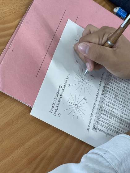 2年生の金曜恒例!聞く力をつける朝のリスニングタイムです。今日のお題はいま勉強中の理科の天候に関するものです。